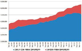 今さらですが、「国の借金」は間違いで、正しくは「政府の負債」です。正しい「国の借金」である日本の対外負債は、確かに400兆円以上あります。正確には、13年6月速報値で463.2兆円です。