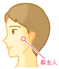 もみあげの前、頬骨の上端に位置する客主人は、握りこぶしや親指でやや強めに押す。