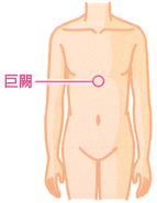 みぞおちの中央、胸骨の下端から少し下にある巨闕は、みぞおちの中央に 両手を重ねて数秒おきに指圧する。