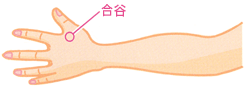 手の甲の、親指と人さし指の付け根の間にある合谷は、親指を手の甲へ食い込ませるくらい強めに押す。