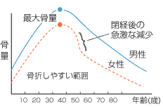 骨粗鬆症は、高齢者特に閉経後の女性に多く起こる病気です。 |