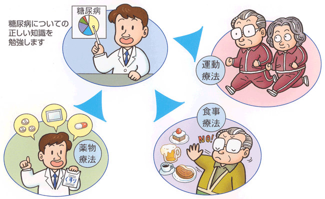 糖尿病性神経障害の治療の基本は血糖を適正な範囲内に保つことです。食事療法、運動療法、薬物療法などによる血糖コントロールが大事です。