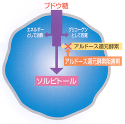 前のページで説明したアルドース還元酵素を阻害してソルビトールを作らなくする薬を服用することによって、神経障害の発生や進行を防ぐ方法もあります。