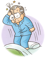 …寝ている姿勢から立ち上がる時は一旦上半身を起す、横を向いて起きる、いすに腰かけるなどの動作で一息ついてから、ゆっくり立ち上がるようにします。
